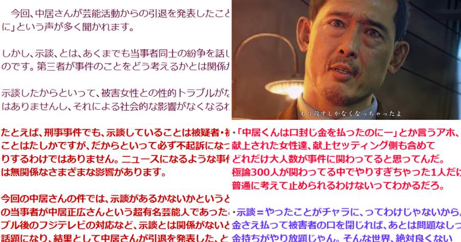 弁護士「中居正広性加害でX民が『示談したのに解決できないなら女を◯すしかない』等、被害女性を叩きまくってるけど、それ普通に法的責任問われる可能性あるぞ」